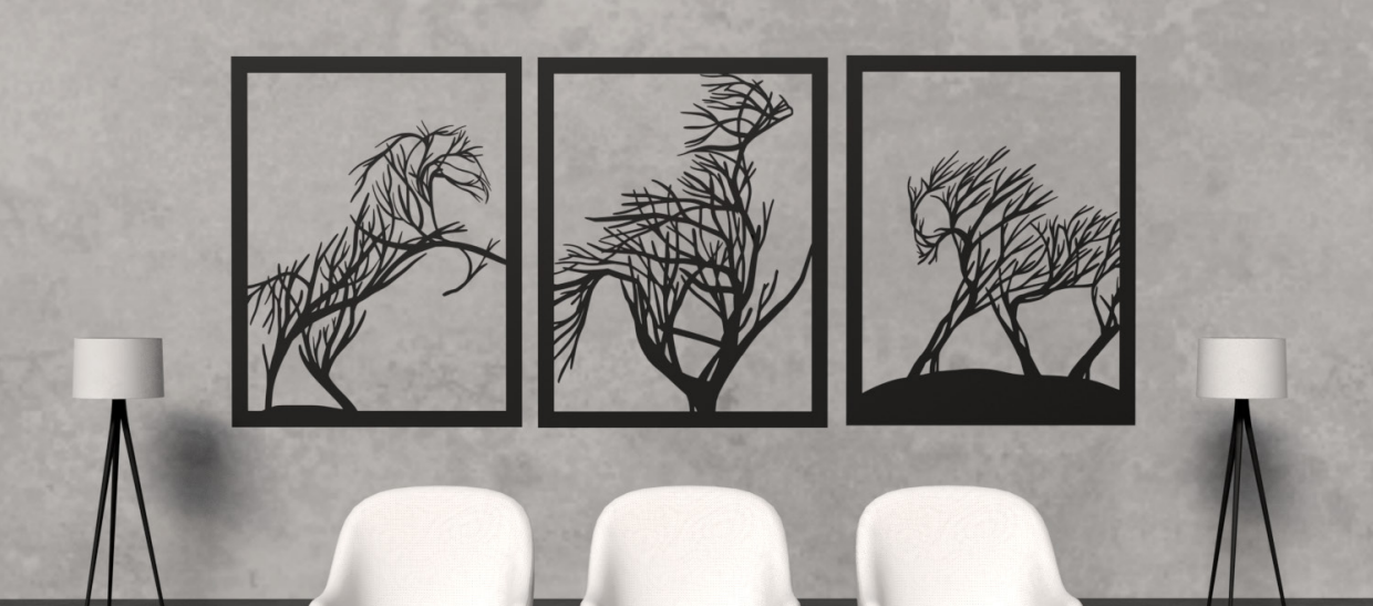 Dekoracje ścienne w stylu loft nie istnieją w próżni – ich siła tkwi w relacji z otoczeniem. Nasze produkty projektujemy tak, aby wchodziły w silną interakcję z typowymi dla przestrzeni industrialnej materiałami. Matowa czerń stali malowanej proszkowo jest naturalnym kontrapunktem dla chropowatej, czerwonej cegły. Gładkość i precyzja laserowego cięcia kontrastują z nieregularną strukturą betonu architektonicznego. To właśnie te kontrasty budują napięcie oraz dynamikę we wnętrzu. Nasze projekty – czy to mniejsze panele, geometryczne akcenty czy tematyczne kompozycje – służą do przełamywania monotonii dużych płaszczyzn w najbardziej reprezentatywnych przestrzeniach. Ażurowe, metalowe dekoracje wprowadzają do wysokiego salonu typu loft lekkość, kontrastującą z przytłaczającymi, masywnymi ścianami. To wyjątkowa ozdoba podkreślająca autentyczność industrialnych przestrzeni – surowa w formie, lecz szlachetna w wyrazie.